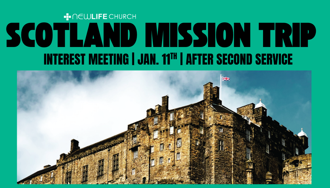 We are hosting a mission trip to Scotland for New Life Church during Summer of 2026!